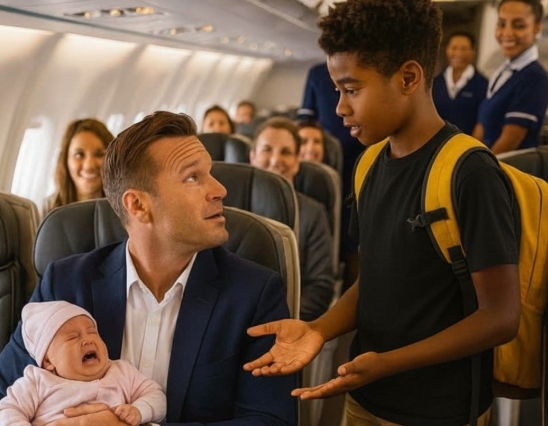 Dziecko miliardera nie przestawało płakać w samolocie — aż do czasu, gdy pewien młody czarnoskóry chłopiec zrobił coś niesamowitego.