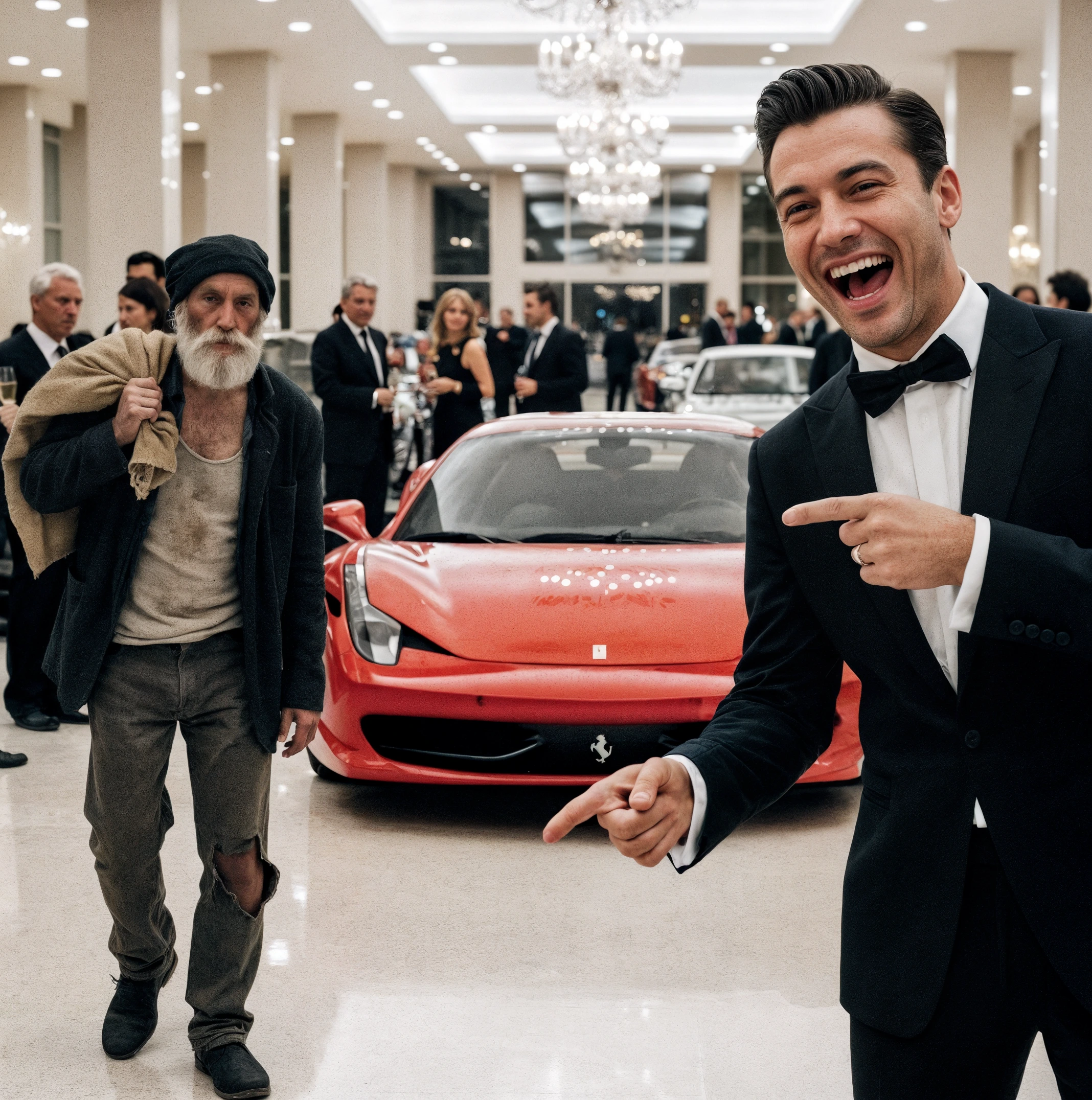 W trakcie eleganckiej imprezy, Julián Arce wybuchł głośnym śmiechem i z przekąsem rzucił wyzwanie: „Stary głodny, dam ci moją Ferrari, jeśli potrafisz ją odpalić”. Sala zareagowała salwą śmiechu. Wytwornie ubrani mężczyźni oraz kobiety w wieczorowych sukniach patrzyli na niego z pogardą, traktując tę scenę jak widowisko.