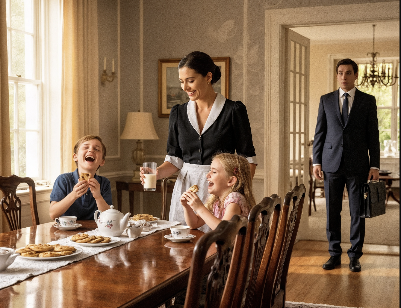 Minęły miesiące, a pewnego popołudnia Adrian ponownie zobaczył radosną scenę przy stole. Tym razem Ethan i Lily uczyli Rosę zabawnego tańca, którego nauczyli się w szkole. Światło żyrandola odbijało się wesoło, a dom rozbrzmiewał szczerym śmiechem. Serce Adriana przepełniała dotąd nieznana mu radość.