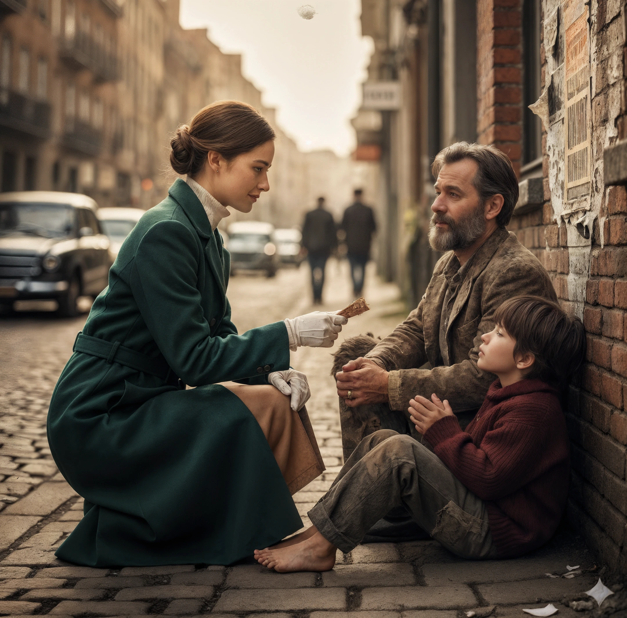 Minęła jeszcze godzina. Niektórzy przechodnie wrzucają im pieniądze bez spojrzenia, inni udają, że ich nie widzą. Gdy Mateo pogrąża się w smutku, zatrzymuje się młoda kobieta ubrana w niebieski mundur sprzątaczki z wycierającymi się butami sportowymi. Chociaż wygląda na zmęczoną, jej oczy są pełne ciepła.