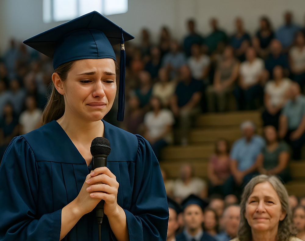 Emma stanęła na scenie, jej głos brzmiał tak samo, jak na uroczystości ukończenia szkoły lata wcześniej.