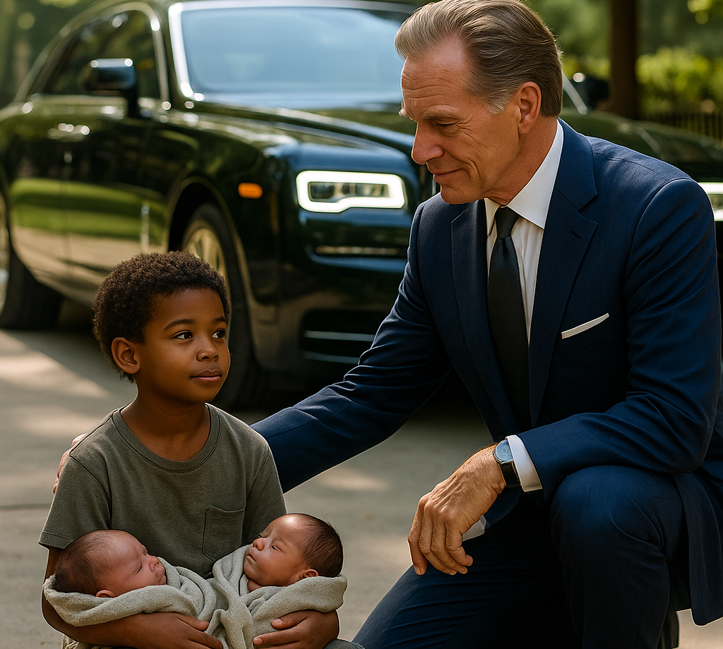 Poprowadził chłopca i niemowlęta do samochodu. Kiedy drzwi się zamknęły, miasto huczało wokół nich, nieświadome, że właśnie rozpoczęła się zmiana życia.