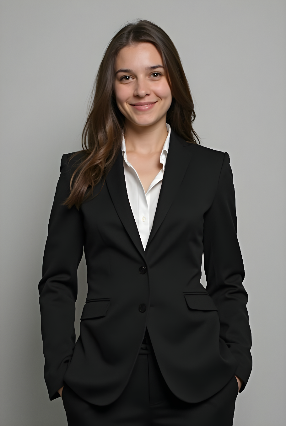 W recepcji przywitała ją młoda kobieta w idealnie skrojonym kostiumie.